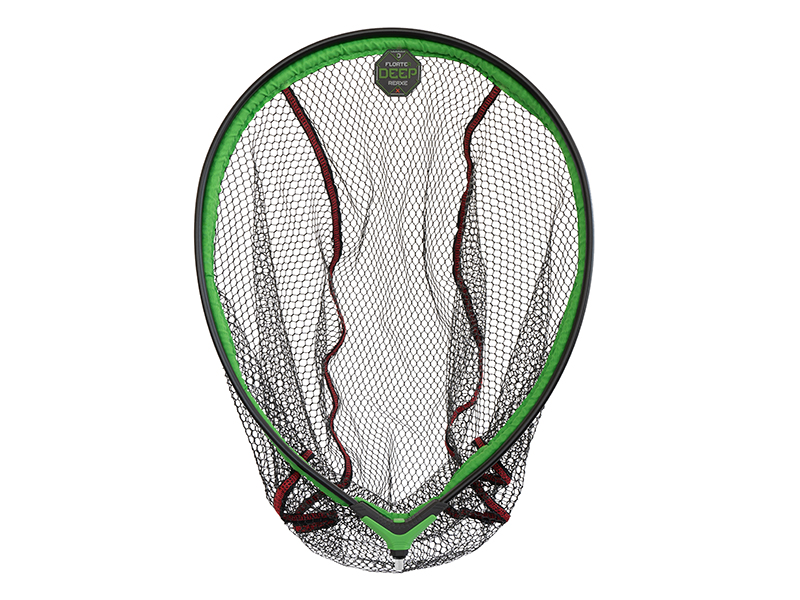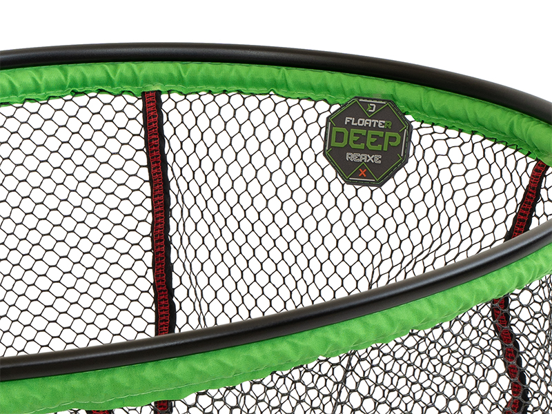 Siatka podbieraka FloateR DEEP pokryta jest gumą, dzięki czemu nie chłonie wody i szybko schnie. Jest znacznie głębsza niż standardowe kosze, co oznacza więcej miejsca na większe ryby i brak ryzyka wydostania się ich z podbieraka. Dodatkowo jest pokryta zieloną tkaniną na całej ramie od spodu, aby zwiększyć trwałość.